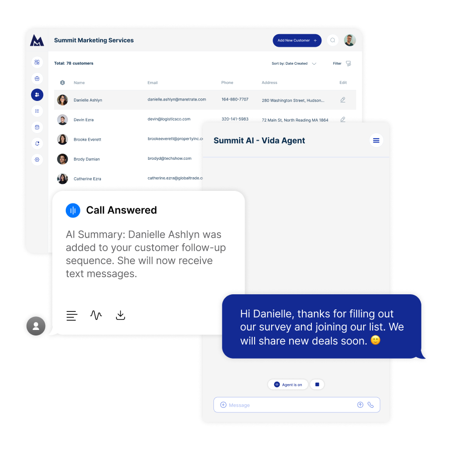 All Vida Agents are omnichannel by default. That means they can send and receive communications across multiple channels — including voice phone calls, texts, emails, web chat, and even web calls. No matter where your customers reach out, your agent can respond instantly and consistently.