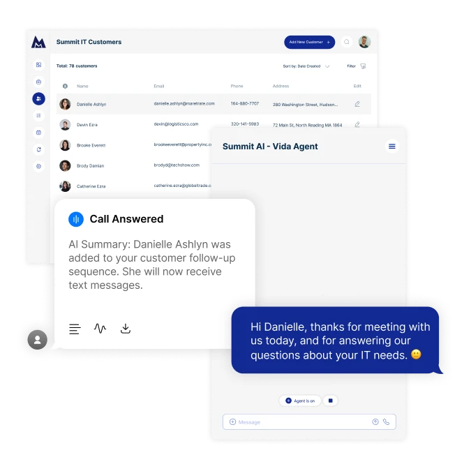 All Vida Agents are omnichannel by default. That means they can send and receive communications across multiple channels — including voice phone calls, texts, emails, web chat, and even web calls. No matter where your customers reach out, your agent can respond instantly and consistently.